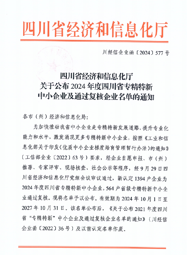 近日,四川省經(jīng)濟和信息化廳公布了2024年專精特新中小企業(yè)名單,四川艾能捷科技有限公司(Sichuan Energy Technology Co., Ltd.)憑借其卓越的技術(shù)實力和專業(yè)化發(fā)展優(yōu)勢,榮獲四川省“專精特新”中小企業(yè)稱號。這一成就體現(xiàn)了艾能捷(ENERGY)公司在技術(shù)創(chuàng)新和專業(yè)服務(wù)方面的卓越表現(xiàn),也符合“...